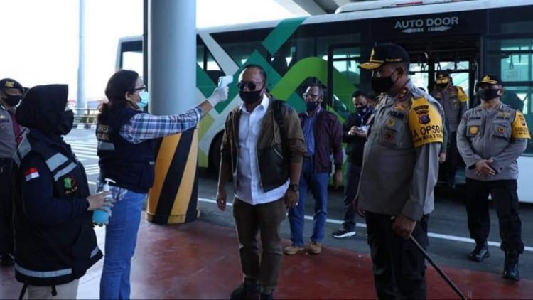 Medan , POL | Kapolda Sumut Irjen Pol Drs Martuani Sormin, MSi didampingi para Pejabat Utama Mapolda Sumut menyambut kedatangan Tim Itwasum Polri bertempat di Bandara Kualanamu International Airport, Minggu (05/07/20)