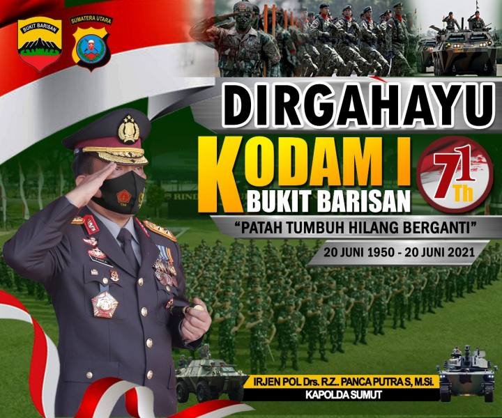 “Patah Tumbuh Hilang Berganti. Dirgahayu Kodam I/BB ke 71,” katanya.