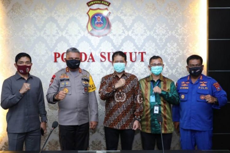 Medan, POL | Kapolda Sumut menyambut kedatangan Pelindo I , turut hadir Direksi PT Pelindo l dan pendamping yaitu Dani Rusli Utama selaku Direktur Utama , Henry Naldi Direktur SDM dan Umum serta Hosadi A Putra sebagai Direktur Teknik. Kamis (16/07/20) bertempat di Mapolda Sumut.