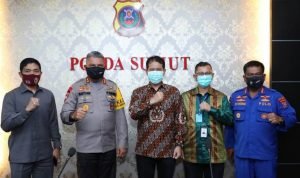 Medan, POL | Kapolda Sumut menyambut kedatangan Pelindo I , turut hadir Direksi PT Pelindo l dan pendamping yaitu Dani Rusli Utama selaku Direktur Utama , Henry Naldi Direktur SDM dan Umum serta Hosadi A Putra sebagai Direktur Teknik. Kamis (16/07/20) bertempat di Mapolda Sumut.