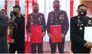 Medan, POL | Kapolresta Deli Serdang Kombes Pol Yemi Mandagi, SIK dan Waka Polresta Deli Serdang AKBP Julianto P Sirait, SH, SIK menerima penghargaan di HUT ke-74 Bhayangkara, Rabu (1/6/2020) di Aula Tribrata Mapolda Sumut.