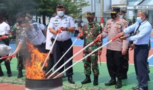 Medan, POL |Kepala Rumah Tahanan (Karutan) 1 Medan dan jajaran bersama Forkopimda Kota Medan lakukan pemusnahan barang bukti hasil Razia selama 6 bulan bertempat di lapangan apel Rutan 1 Medan, Rabu (24/2/2021).