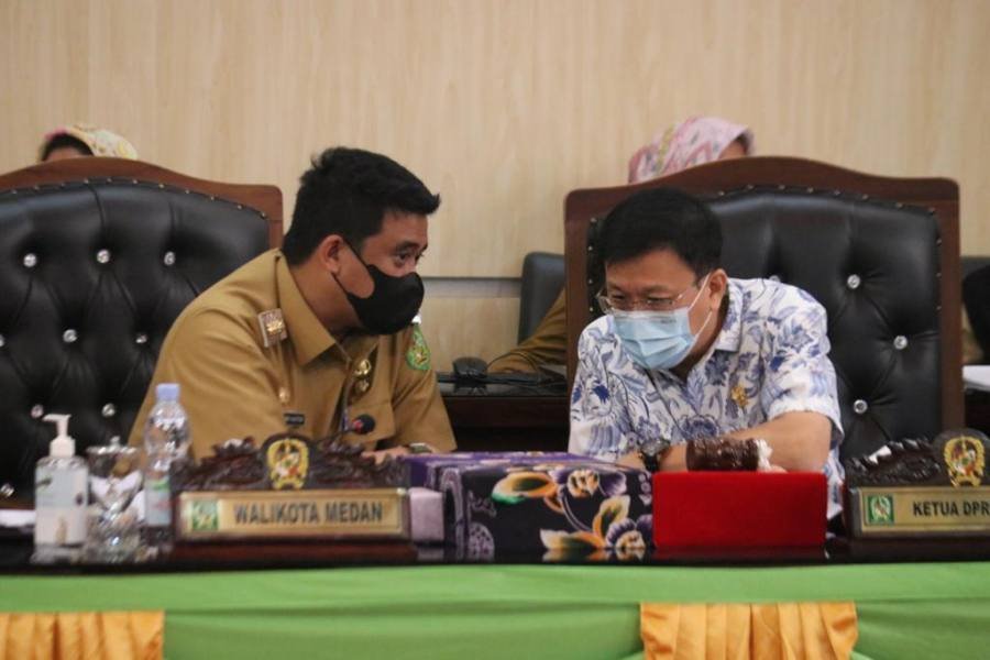 Demikian salah satu poin jawaban Wali Kota Medan, Bobby Nasution, atas pertanyaan Fraksi PDIP DPRD Medan tentang realisasi pendapatan daerah yang tidak memenuhi target, pada Sidang Paripurna DPRD Medan Penyampaian Nota Jawaban Wali Kota Medan atas Pemandangan Umum Fraksi-fraksi DPRD tentang Laporan Pertanggungjawaban Pelaksanaan APBD Kota Medan Tahun Anggaran 2020, Senin (21/6/2021) di gedung dewan.