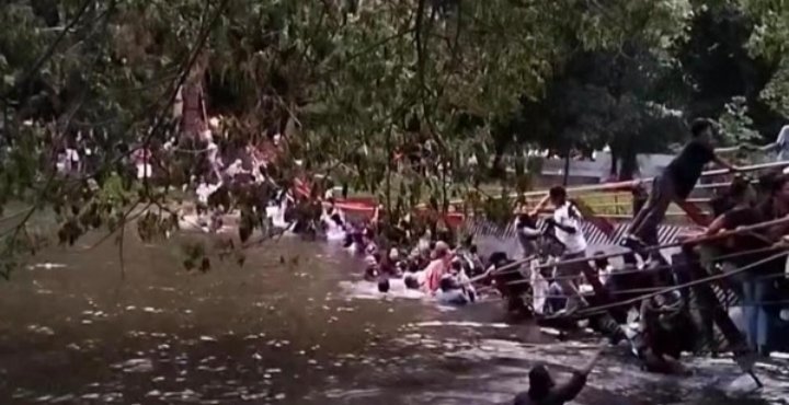 “Didapatkan informasi bahwa saat itu secara bersamaan ada sekitar lebih dari 50-80 orang yang berada diatas jembatan, dan saat itu ada juga sekelompok anak muda yang melakukan gerakan lompat-lompat di atas jembatan sehingga menyebabkan jembatan goyang dan akhirnya ambruk,” ujarnya.