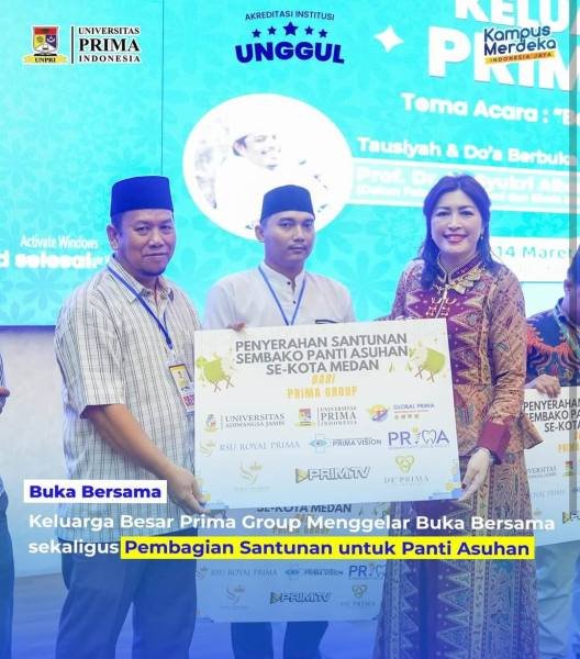“Setiap tahunnya Prima Group selalu memberikan santunan bagi Panti Asuhan yang ada di Kota Medan, dan tahun ini, dengan penuh rasa syukur, Prima Group mengadakan santunan Ramadan untuk 30 panti asuhan yang berada di Kota Medan dan sekitarnya. Kami berharap bantuan ini dapat memberikan manfaat bagi adik-adik yang berada di panti asuhan serta memberikan mereka kebahagiaan, serta mengingatkan kita semua tentang pentingnya berbagi dan peduli terhadap sesama,” kata Rektor UNPRI.