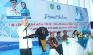 Harapan ini disampaikan Wali Kota ketika menerima kedatangan Tim Penilai Lomba Pelaksana Terbaik Tingkat Nasional Kesatuan Gerak PKK KKBPK KES yang melakukan verifikasi langsung ke Kelurahan Sari Rejo di halaman depan Masjid Silaturahim Jalan Cinta Karya, Selasa (9/4). Sebelum masuk babak enam besar, Kelurahan Sari Rejo telah bersaing dengan 29 kelurahan dari kabupaten/kota se-Indonesia.