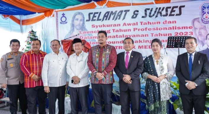 Medan, POL | Senantiasa menjaga kerukunan dan kedamaian antar umat beragama menjadi pesan yang disampaikan Wali Kota Medan Bobby Nasution saat menghadiri Syukuran Awal Tahun 2023 HKBP Distrik X Medan-Aceh di Halaman Kantor HKBP Distrik X Medan-Aceh, Jalan Uskup Agung Medan, Jum’at (20/1/2023).