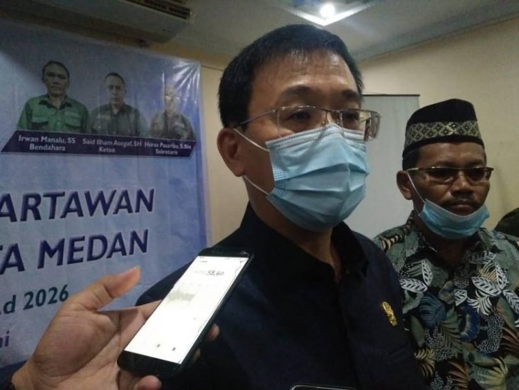 Medan, POL | Ketua DPRD Medan, Hasyim mengukuhkan kepengurusan Wartawan Unit DPRD Medan periode 2021-2023 di bawah kepemimpinan Said Ilham Asegaf, yang berlangsung di Hotel Madani Medan, Senin (05/04/21).