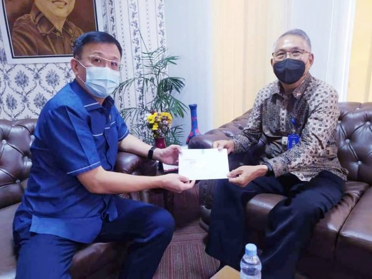 Medan, POL | Ketua DPRD Medan Hasyim SE menerima kunjungan Konsul kehormatan Negara Belanda Ony Hindra Kusuma di ruang kerja Ketua DPRD Medan Lt I gedung dewan, Senin (4/10/2021). Dalam pertemuan itu, kedua pejabat itu membahas tentang penerapan sektor UMKM, Lingkungan Hidup, Energi Terbarukan dan sektor air minum.