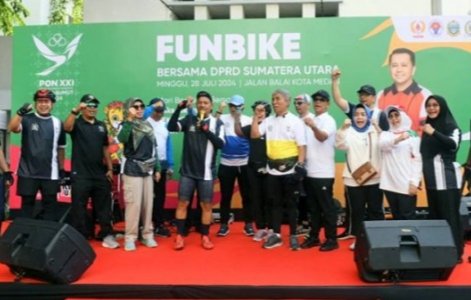 Tak sekadar imbauan, DPRD Sumut bersama Panitia Besar (PB) Pekan Olahraga Nasional (PON) XXI Wilayah Sumatera Utara (Sumut), Minggu (28/7/2024), menggelar Funbike untuk menyosialisasikan Pekan Olahraga Nasional (PON) XXI Aceh-Sumut pada masyarakat.