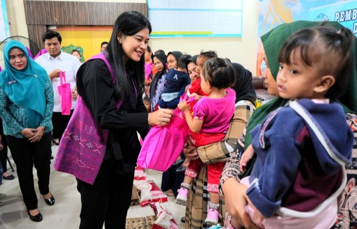 Medan, POL | Sebagai bentuk rasa kepedulian sekaligus upaya mengatasi stunting di Kota Medan, Ketua TP PKK Kota Medan, Kahiyang Ayu M. Bobby Afif Nasution memberikan paket makanan tambahan kepada anak penderita stunting di Kecamatan Medan Labuhan, Rabu (18/10/2023).