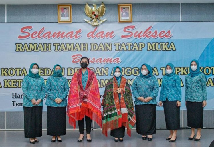Dalam pertemuan ramah tamah ini Ketua TP PKK Kota Medan dan Ibu Wakil Wali Kota Medan juga di ulosi oleh Wakil Ketua I dan Bendahara TP PKK Kota Medan sebagai bentuk ucapan selamat datang di keluarga besar PKK Kota Medan. (cos)