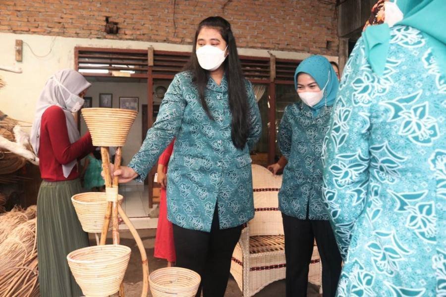 Medan, POL | Ketua TP PKK Kota Medan, Kahiyang Ayu Muhammad Bobby Afif Nasution, S.TP., M.M. meninjau usaha kerajinan rotan dan pembuatan kerupuk jangek di Kecamatan Medan Helvetia, Selasa (23/3/2021). Peninjauan ini merupakan rangkaian kunjungan kerjanya dalam Pembinaan Kelembagaan PKK dan 10 Program Pokok PKK serta UMKM Kota Medan di Kecamatan tersebut.