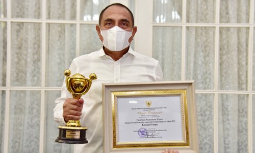 Medan, POL | Pemerintah Provinsi Sumatera Utara (Sumut) memperoleh Anugerah Parahita Ekapraya 2020 dalam kategori utama dari Kementerian Pemberdayaan Perempuan dan Perlindungan Anak RI. Anugerah ini diberikan atas keberhasilan Gubernur Sumut Edy Rahmayadi mewujudkan kesetaraan dan keadilan gender melalui strategi pengarusutamaan gender (PUG).