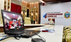 Medan, POL | Sekretaris Daerah Provinsi (Sekdaprov) Sumatera Utara (Sumut) R Sabrina mengikuti Video Conference yang dipimpin Plt Sekjen Kemendagri Muhammad Hudori dari Jakarta, Jumat (3/4/2020) sore.