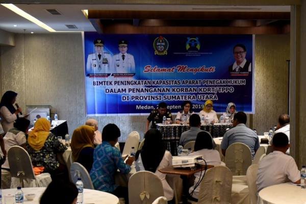 Hal ini disampaikan Sekretasis Daerah Provinsi (Sekdaprov) Sumut Sabrina saat membuka Bimbingan Teknis (Bimtek) Kapasitas Aparat Penegak Hukum dalam Penanganan KDRT/TPPO di Provinsi Sumut, Rabu (25/9/2019), di Hotel Grand Mercure, Jalan Sutomo Nomor 1, Medan.
