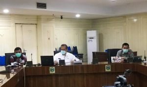 Mewakili GTPP Covid-19 Provinsi Sumut yakni Koordinator Bidang Administrasi dan Keuangan Agus Tripriyono didampingi Ketua Korsupgah Korupsi Terintegrasi KPK Sumut M Fitriyus dan Plt Kepala BPKAD Sumut Ismael P Sinaga. Ketiganya berpartisipasi dalam konferensi video yang dilaksanakan di ruang rapat FL Tobing lantai 8 Kantor Gubsu, Jalan Diponegoro Nomor 30 Medan.