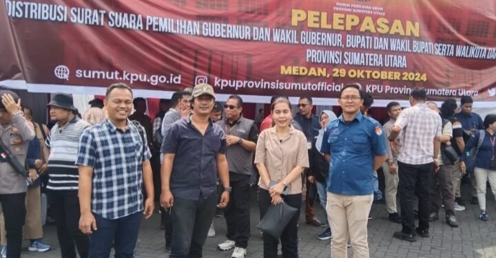 Medan, POL | Ketua KPU Medan Mutia Atiqah menerima logistik Surat Suara dari KPU Sumut,untuk Pemilihan Serentak Kepala Daerah (Pilkada) Gubernur dan Wakil Gubernur, Bupati dan Wakil Bupati dan Walikota dan Wakil Walikota tahun 2024, di Depot Countener Pelabuhan Belawan Medan, pada Selasa (29/10/2024).