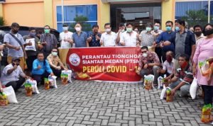 Medan, POL | Koperasi Pengangkutan Umum Medan (KPUM) lewat mitra kerjanya Perantau Tionghoa Siantar Medan (PTSM) menyalurkan bantuan sosial (Bansos) kepada 1.080 supir berupa 5 kg beras dan 2 liter minyak goreng.