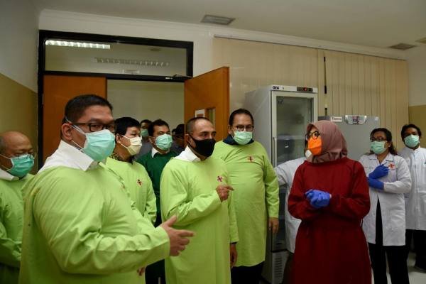 Medan, POL | Gubernur Sumatera Utara (Gubsu) Edy Rahmayadi meninjau laboratorium Polymerase Chain Reaction (PCR) pertama untuk Covid-19 di Rumah Sakit (RS) Universitas Sumatera Utara (USU), Jalan Dr Mansyur Medan, Jumat (17/4/2020). Bantuan Kementerian Kesehatan (Kemenkes) ini diharapkan dapat mempercepat pengujian Covid-19.