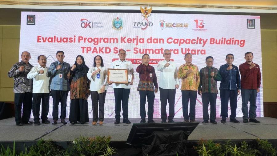 Penghargaan tersebut diberikan dalam acara evaluasi program kerja dan capacity building Tim Percepatan Akses Keuangan Daerah (TPAKD) se-Sumatera Utara yang digelar di Ballroom JW Marriott Hotel Medan, Rabu (4/12/2024).