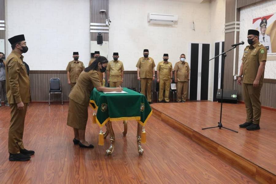 Medan, POL | Wali Kota Medan Bobby Nasution mengambil sumpah dan melantik 33 pejabat administrasi administrator dan pengawas bidang kesehatan yang bertugas di Dinas Kesehatan, RS Pirngadi, RS Medan Labuhan, dan puskesmas-puskesmas, Senin (30/5/2022) di Ruang Rapat III Kantor Wali Kota Medan.