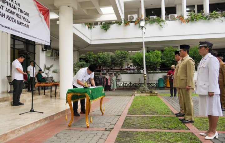 Medan, POL | Jangan ada korupsi di lingkungan Pemko Medan menjadi penekanan utama Wali Kota Medan Bobby Nasution saat melantik 6 pejabat tinggi dan pejabat administrasi di halaman tengah Balai Kota Medan, Rabu (16/11/2022) petang. Sebab, setiap jabatan di lingkungan Pemko Medan tidak ada transaksional.