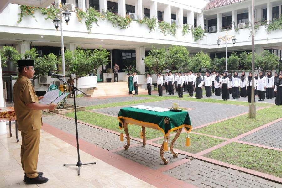 Medan, POL | Sebanyak 622 orang Pegawai Pemerintah dengan Perjanjian Kerja (PPPK) Jabatan Guru Tahap I Formasi Tahun 2021 Pemko Medan Tahun 2022 dilantik dan menerima Surat Keputusan (SK) Pengangkatan dari Wali Kota Medan Bobby Nasution di halaman tengah Balai Kota Medan, Selasa (24/5/2022).