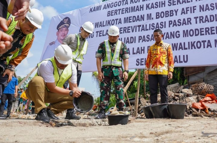Medan, POL | Pasar Akik yang terletak di jalan AR Hakim, Kelurahan Sukaramai II, Kecamatan Medan Area direvitalisasi. Peresmian revitalisasi ini ditandai dengan peletakan batu pertama oleh Wali Kota Medan Bobby Nasution, Jumat (5/7/2024).