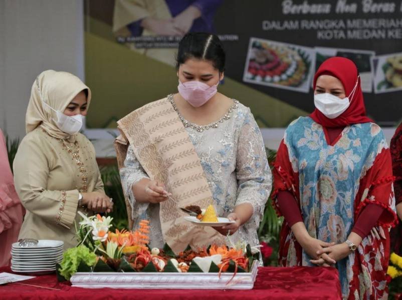 Medan, POL | Lomba Makanan Kudapan Berbasis Non Beras Non Terigu meriahkan Hari Ulang Tahun Kota Medan ke -431 Tahun. Lomba yang diikuti 21 kecamatan se- Kota Medan ini dibuka oleh Ketua Dekranasda Kota Medan Ny Kahiyang Ayu Bobby Nasution di gedung serbaguna PKK, Petisah, Jumat (2/7/2021).
