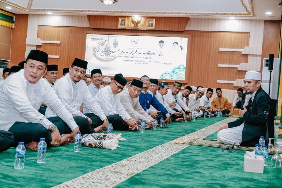 Wakil Wali Kota H Aulia Rachman beserta pimpinan perangkat daerah di lingkungan Pemko Medan turut serta dalam Shalat Tarawih berjamaah di malam ketujuh Ramadhan, yang diimami Ustad Riswan Piliang tersebut.