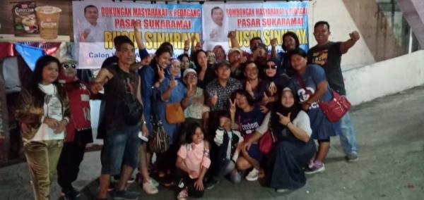 “Kami siap mendukung pak Rusdi Sinuraya karena selama ini kerjanya sangat bagus dalam menata pasar dan memperhatikan kesejahteraan pedagang. Apa yang diinginkan pedagang bisa tercapai,” kata perwakilkan pedagang Pasar Sukaramai Ana boru Manulang.