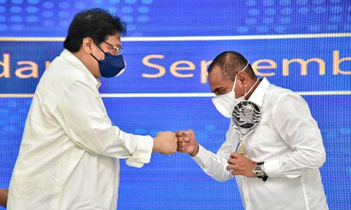 Tags: Gubernur Edy RahmayadiMenko AirlanggaPialaSerahkanTPID Award 2021