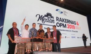 Medan, POL | Menteri Komunikasi dan Informatika (Menkominfo) Rudiantara dan Wakil Gubernur Sumatera Utara (Wagub Sumut) Musa Rajekshah menghadiri pembukaan Rapat Kerja Nasional (Rakernas) Asosiasi Penyelenggara Jasa Internet Indonesia (APJII) Tahun 2019 di Hotel Santika Premiere Dyandra, Medan, Rabu (26/6/2019).