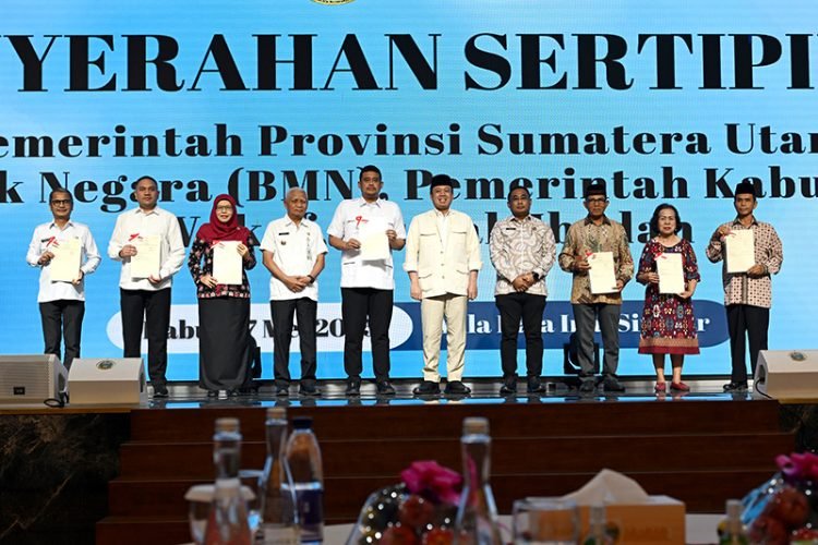 Rapat tersebut juga membahas percepatan sertifikasi tanah yang ada di Sumut. Saat ini, dari total 4 juta hektare, ada kurang lebih 54% atau 2 juta hektare tanah yang belum tersertifikasi. Dalam empat tahun ke depan, Ia menargetkan tanah yang sudah terserfitikasi mencapai 70%.