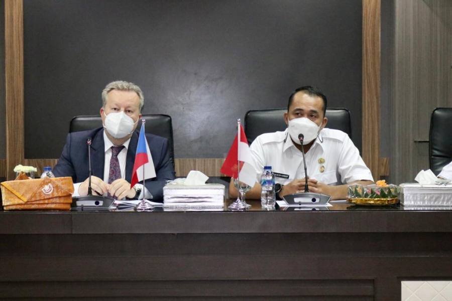 Medan, POL | Menteri Lingkungan Hidup Republik Ceko, Richard Brabec bersama Duta Besar Republik Ceko untuk Indonesia, Jaroslav Doleček, Rabu (23/6/2021) berkunjung ke Pemko Medan, untuk menjajaki peluang kerja sama di bidang infrastruktur, energi, dan pariwisata.