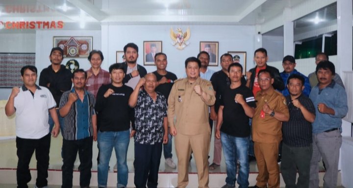 Samosir, POL | Bupati Samosir Vandiko Timotius Gultom, ST didampingi Kadis Pendidikan Pemuda dan Olahraga Johnson Gultom serta Kadis Kominfo diwakili Kabid IKP Togarma Naibaho, menerima audiensi Panitia Pertandingan Sepakbola Bupati Cup Kabupaten Samosir 2023, Senin (03/04/2023), di Rumah Dinas Bupati Samosir.