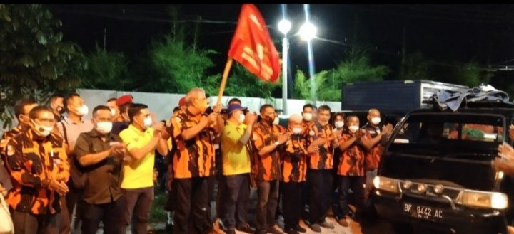 Ketua MPW Pemuda Pancasila Sumatera Utara, Kodrat Shah di sela acara pemberangkatan penyemprotan Eco Enzym (Disinfektan) di halaman rumahnya mengatakan penyemprotan disinfektan tersebut sudah yang kedua kalinya.