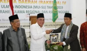 Medan, POL | Majelis Ulama Indonesia (MUI) Sumatera Utara (Sumut) dinobatkan sebagai MUI terbaik di seluruh Indonesia. Kabar baik tersebut diinformasikan oleh Ketua Bidang Hukum MUI Pusat Drs H Basri Barmanra saat mewakili Ketua MUI Pusat pada acara pembukaan Rapat Kerja Daerah (Rakerda) IV MUI Sumut 2019, di Asrama Haji Medan, Jalan Jenderal Besar AH Nasution, Medan, Selasa (22/10/2019).