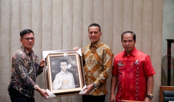 Medan, POL | Wakil Gubenur (Wagub) Sumatera Utara (Sumut) Musa Rajekshah menerima lukisan yang dibuat langsung oleh warga binaan yang sedang menjalani hukuman di Rutan Kelas 1 Medan, Tanjung Gusta. Lukisan ini diserahkan langsung Kepala Rutan Kelas I Medan Nimrot Sihotang kepada Wagub Sumut usai melakukan audiensi dan silaturahmi di JW Marriot Medan, Jumat (10/2/2023).