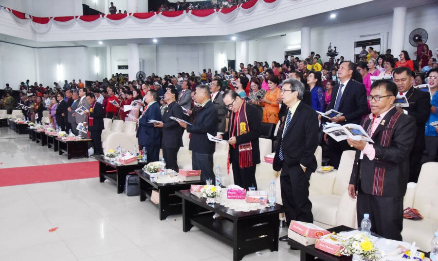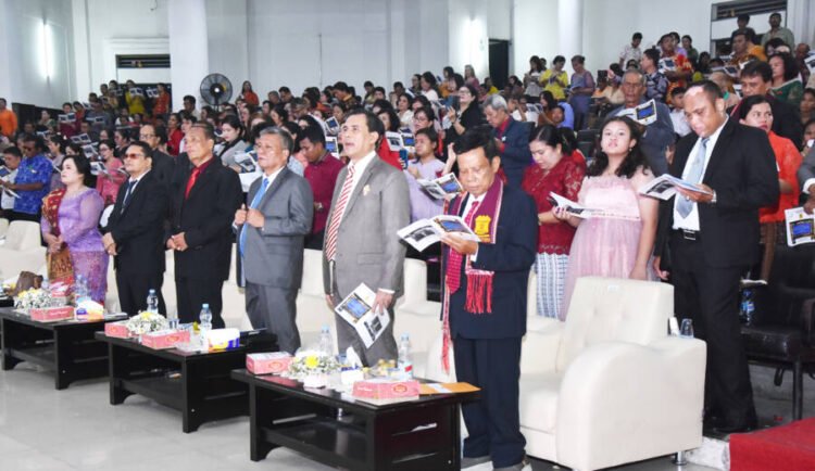 Medan, POL | Cuaca Kota Medan dan sekitarnya yang mendung berawan diberengi hujan rintik-rintik tak menyurutkan semangat anggota Parsadaan Pomparan Raja Toga Manurung yang tergabung dalam Patambor Kota Medan menghadiri perayaan Natal yang berlangsung di Auditorium Universitas Negeri Medan (Unimed), Minggu (7/12/2025).