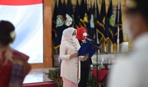 Medan, POL | Ketua Tim Penggerak (TP) Pemberdayaan Kesejahteraan Keluarga (PKK) Sumut Nawal Lubis, yang juga Ketua Dewan Kerajinan Nasional Daerah (Dekranasda) Sumut melantik 10 Ketua TP PKK dan Dekranasda Kabupaten/Kota di Aula Tengku Rizal Nurdin, Rumah Dinas Gubernur, Jalan Jenderal Sudirman Nomor 41 Medan, Jumat (26/2/2021).