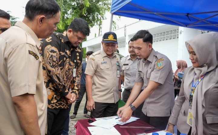 Dalam peninjauan yang diikuti antara lain oleh Pj. Sekda Topan Obaja Putra Ginting, Inspektur Sulaiman Harahap, Kepala Bapenda Sutan Tolang Lubis, tim Bapenda Sumut, Ditlantas Poldasu, Jasa Raharja, dan Bank Sumut itu, Bobby Nasution ikut memperhatikan proses pemeriksaan STNK pengendara mobil.
