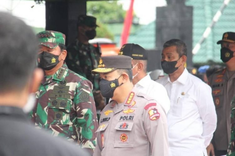 Medan, POL | Panglima TNI Marsekal TNI Hadi Tjahjanto dan Kapolri Jenderal Listyo Sigit Prabowo meninjau kegiatan vaksinasi Covid-19 di Lapangan Benteng Medan, Rabu (3/11/2021). Turut mendampingi kedua pimpinan TNI dan Polri ini Gubsu Edy Rahmayadi dan Wali Kota Medan, Bobby Nasution diwakili Sekda Wiriya Alrahman.