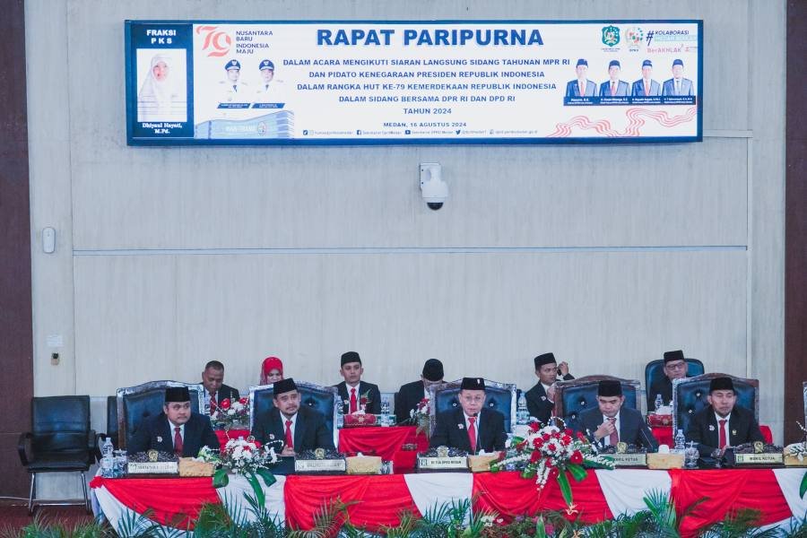 Paripurna yang dipimpin Ketua DPRD Medan, Hasyim SE ini dihadiri juga para Wakil Ketua DPRD Medan, Pj Sekda Topan Obaja Putra, unsur Forkopimda Kota Medan, Pimpinan Perangkat Daerah di lingkungan Pemko Medan, Tokoh masyarakat dan tokoh agama.