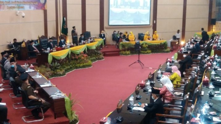 Sidang Paripurna guna mendengar pemandangan umum fraksi-fraksi di DPRD Medan dipimpin Ketua Hasyim SE didampingi para wakil ketua, Senin (14/6/2021) dan dihadiri Sekda Medan Ir Wiriya Alrahman.