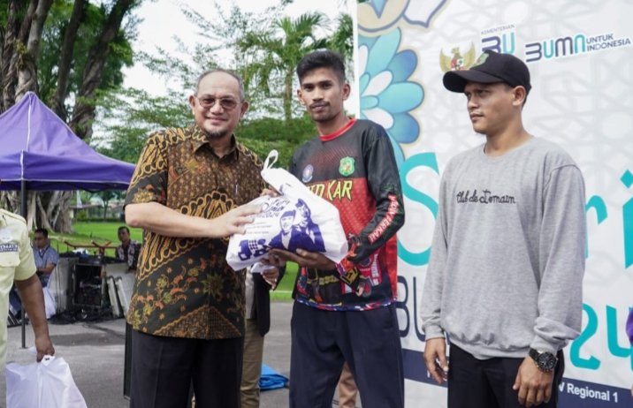 Yakub (40) perwakilan masyarakat dari Kelurahan Babura Sunggal, Kecamatan Medan Sunggal, Kota Medan mengaku senang dengan adanya pasar murah PalmCo Regional 1 yang disinergikan dengan Safari Ramadan BUMN 2024.