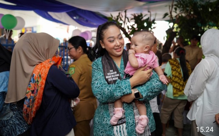 Medan, POL | Ketua Tim Pembina (TP) Pos Pelayanan Terpadu (Posyandu) Kota Medan Airin Rico Waas mendampingi Wakil Ketua TP Posyandu Sumut, Titiek Sugiharti Surya, mengunjungi Posyandu Mawar Ganda Kelurahan Cinta Damai Kecamatan Medan Helvetia dan Posyandu Bunga Asoka I Kelurahan Asam Kumbang Kecamatan Medan Selayang, Senin (5/5/2025).