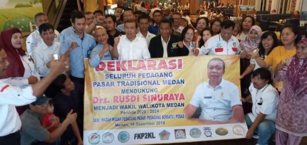 Medan, POL | Puluhan organisasi pedagang yang tergabung Pedagang Bersatu (PEDAS) tetap komit dan sepenuh hati mendukung Rusdi Sinuraya sebagai bakal calon (balon) Wakil Wali Kota pada Pilkada Medan mendatang.