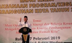 Penekanan ini disampaikan Wali kota Medan ketika membuka Rapat Kerja Pelaksanaan Program/Kegiatan Pembangunan Kota Tahun 2019 di Hotel Grand Aston Medan, Rabu (27/2). Sebab, rendahnya realisasi belanja langsung akan sangat mempengaruhi pertumbuhan ekonomi daerah. Oleh karenanya Wali Kota minta kepada seluruh OPD agar melakukan percepatan proses pengadaan barang dan jasa pada masing-masing OPD.